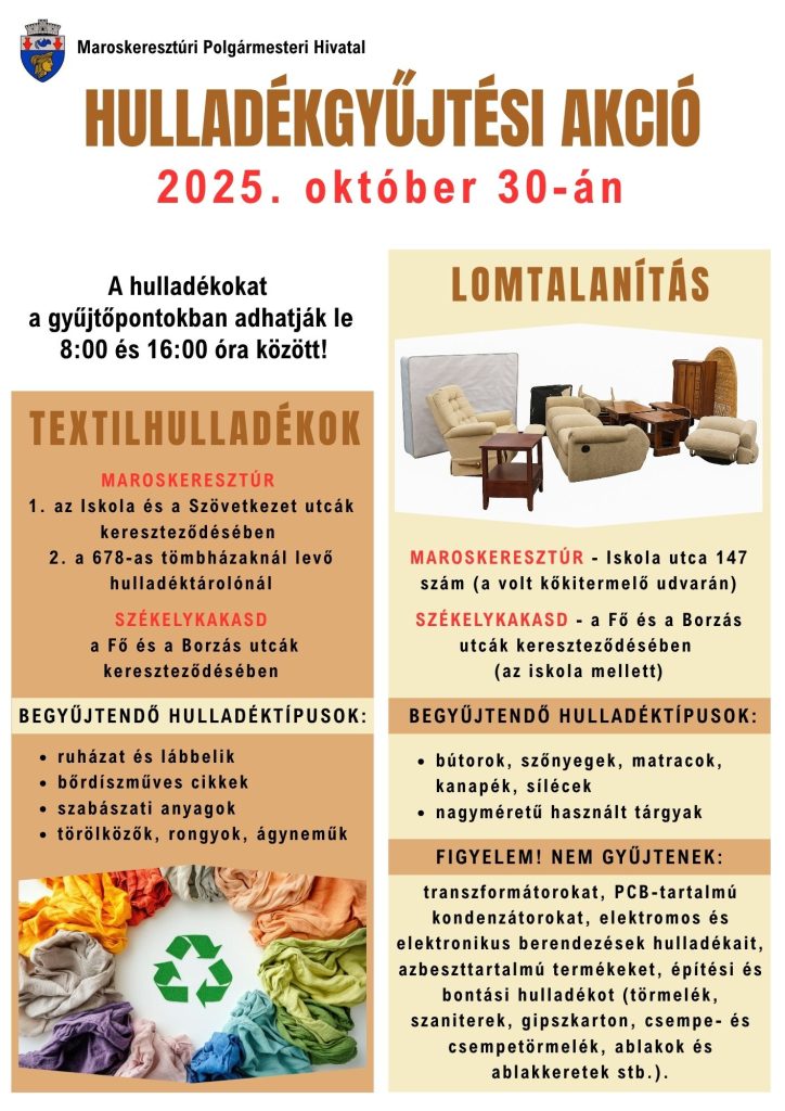 Textilhulladék gyűjtés és lomtalanítás – 2025.10.30.